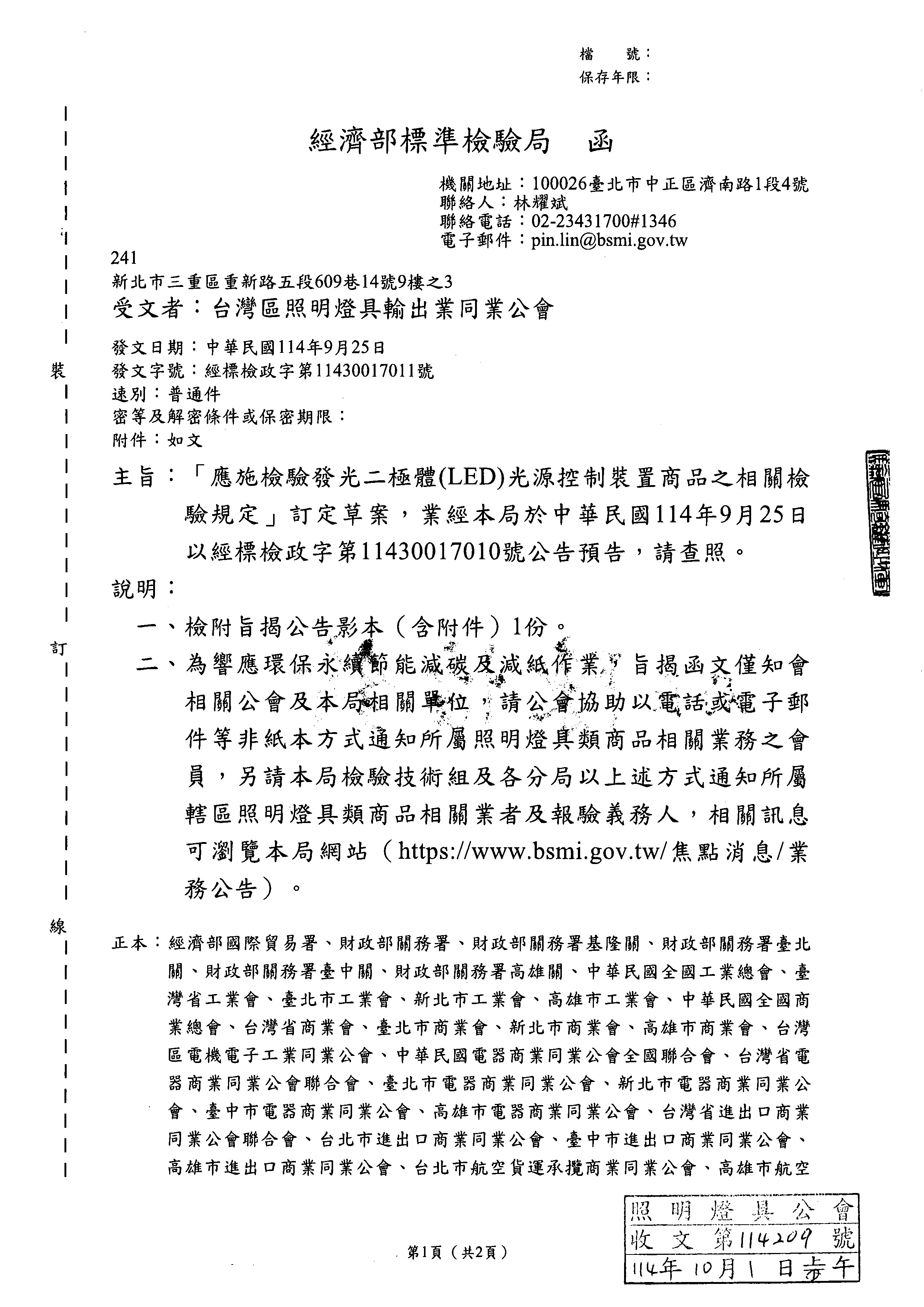 經濟部標準檢驗局-「應施檢驗發光二極體(LED)光源控制裝置商品之相關檢 驗規定」訂定草案