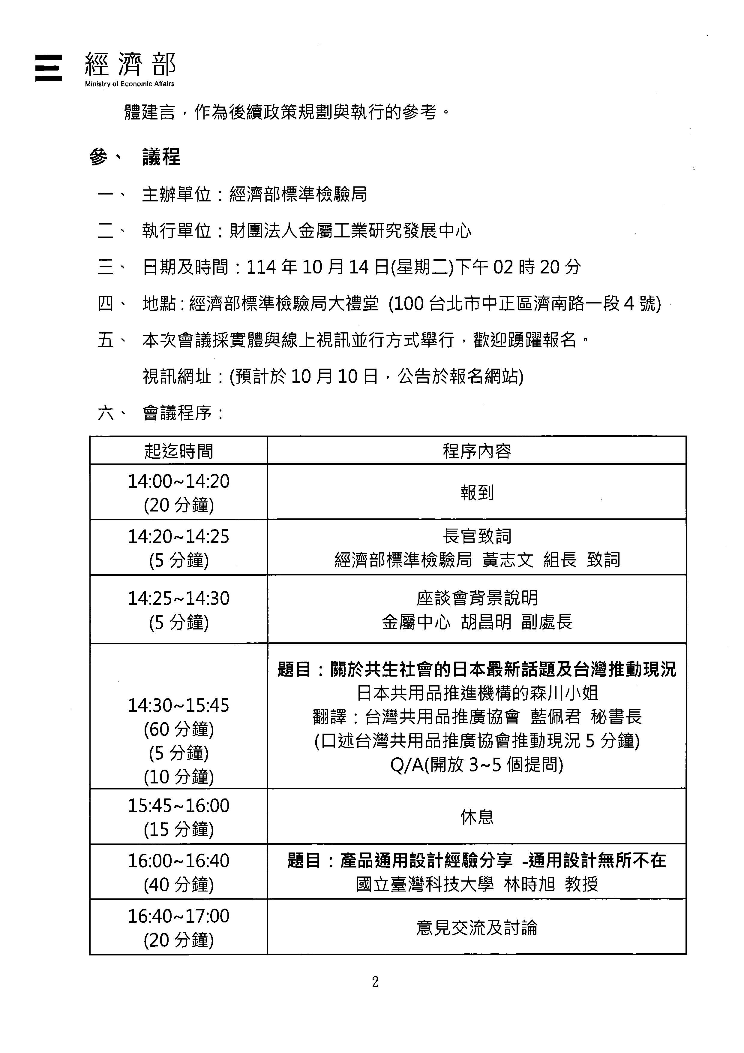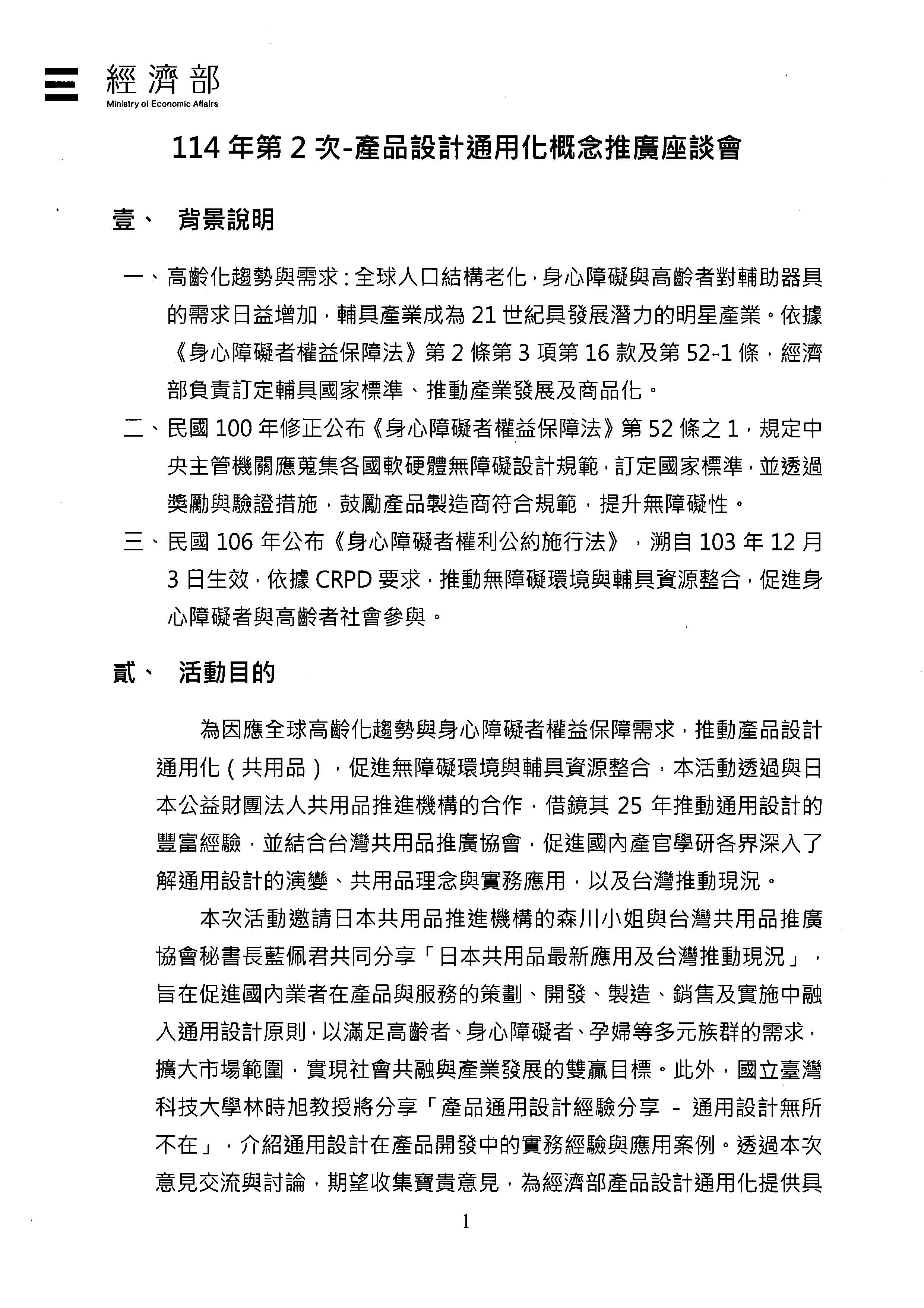 經濟部標準檢驗局:召開「114年第2次-產品設計通用化概念推廣」座談會