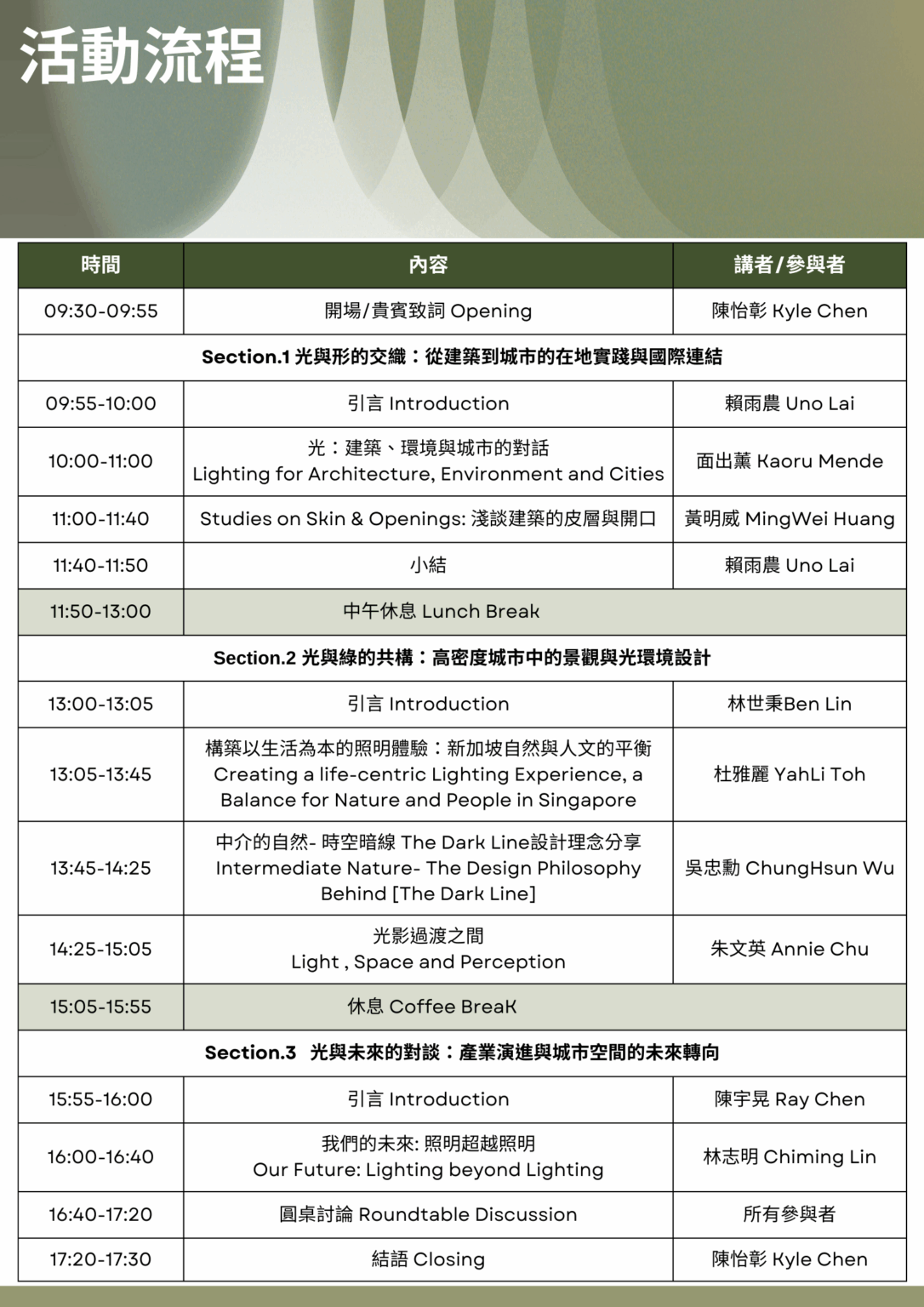 報名連結:https://lightingsociety.oen.tw/events/31uF2r4K0labjqpvHp1LkCjWBIT