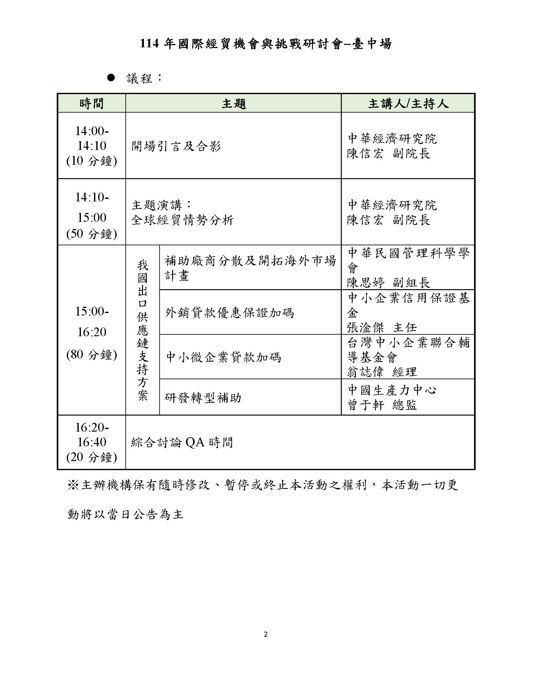 主辦機構:中華經濟研究院WTO及RTA 中心、中華民國對外貿易發展協會臺中辦事處