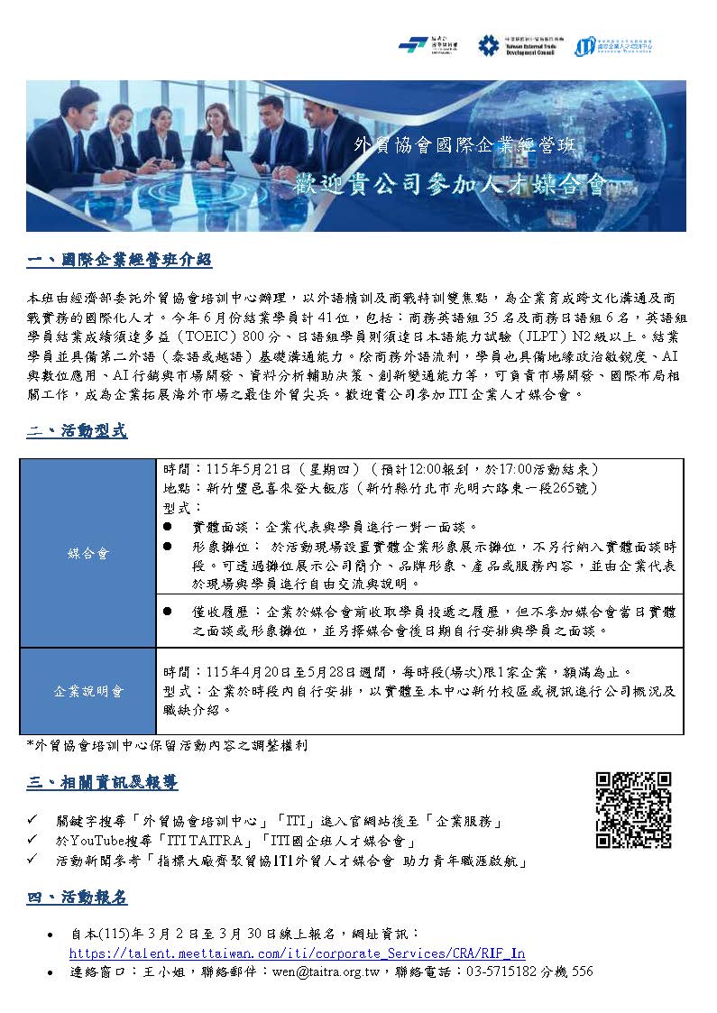 報名網址:https://talent.meettaiwan.com/iti/corporate_Services/CRA/RIF_In