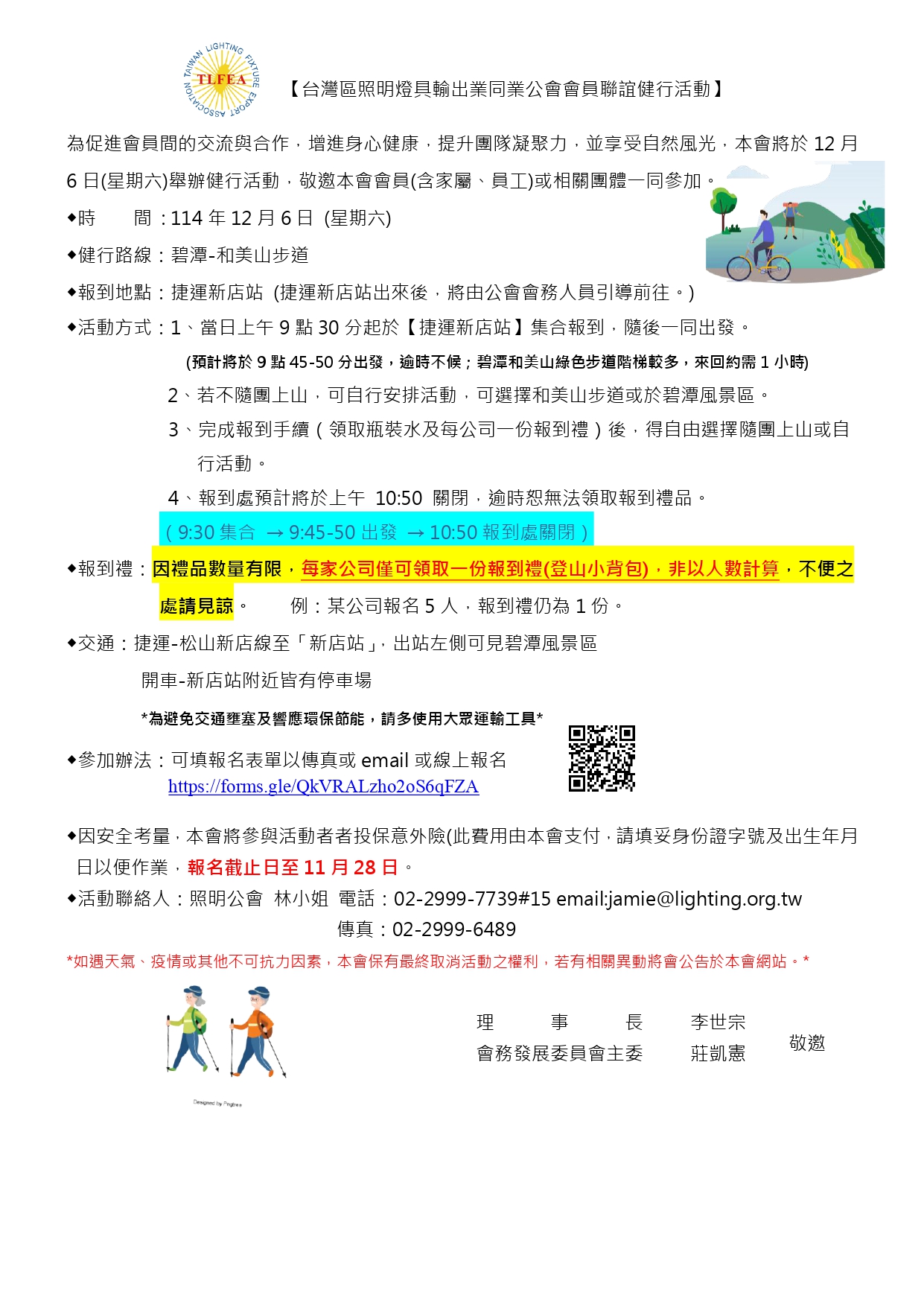 親愛的會員,為促進會員間的交流與合作,增進身心健康,提升團隊凝聚力,並享受自然風光,公會將舉辦登山活動,敬邀本會會員(含家屬、員工)或相關團體一同參加
