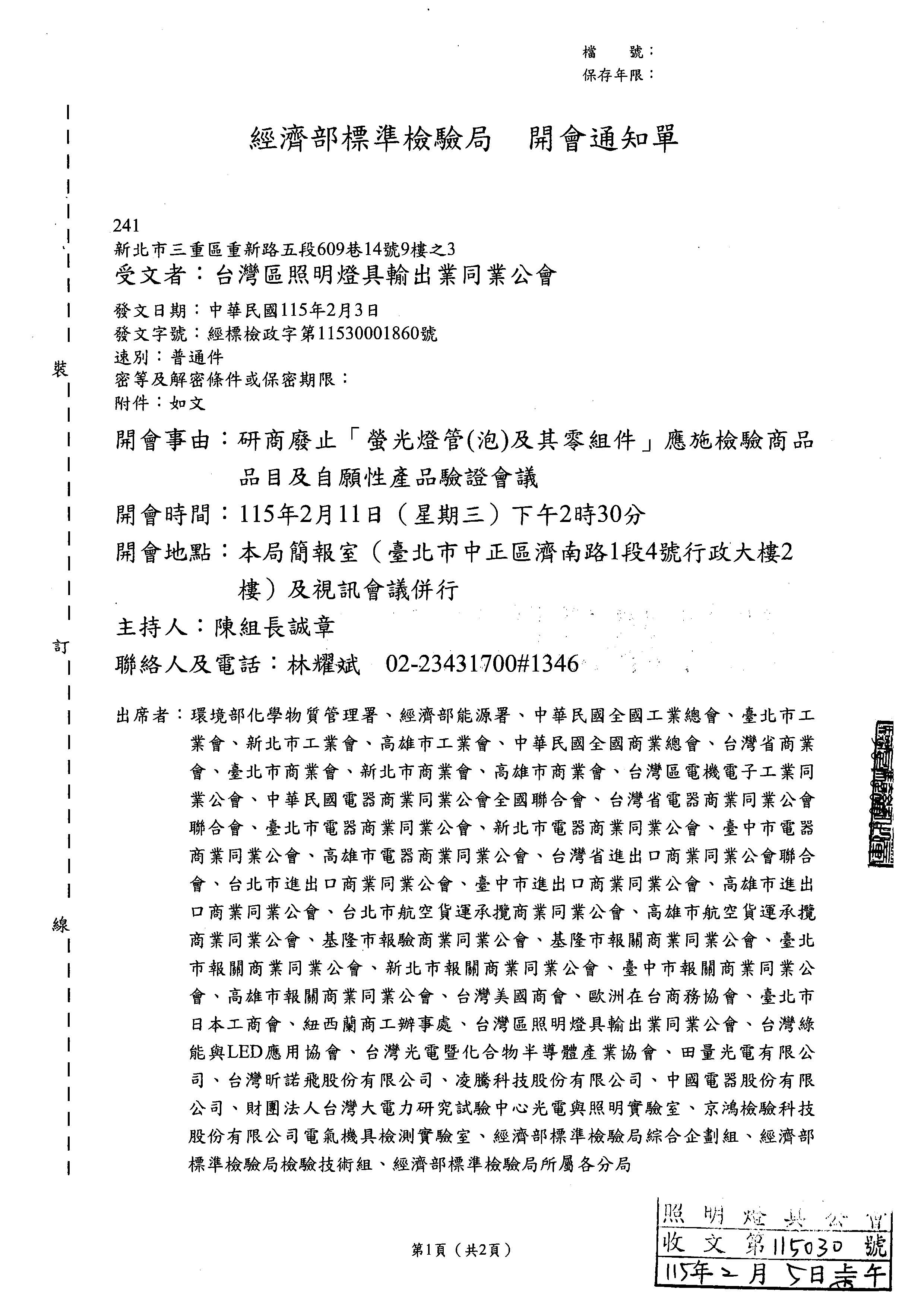 經濟部標準檢驗局:召開研商廢止「螢光燈管(泡)及其零組件」應施檢驗商品品目及自願性產品驗證會議