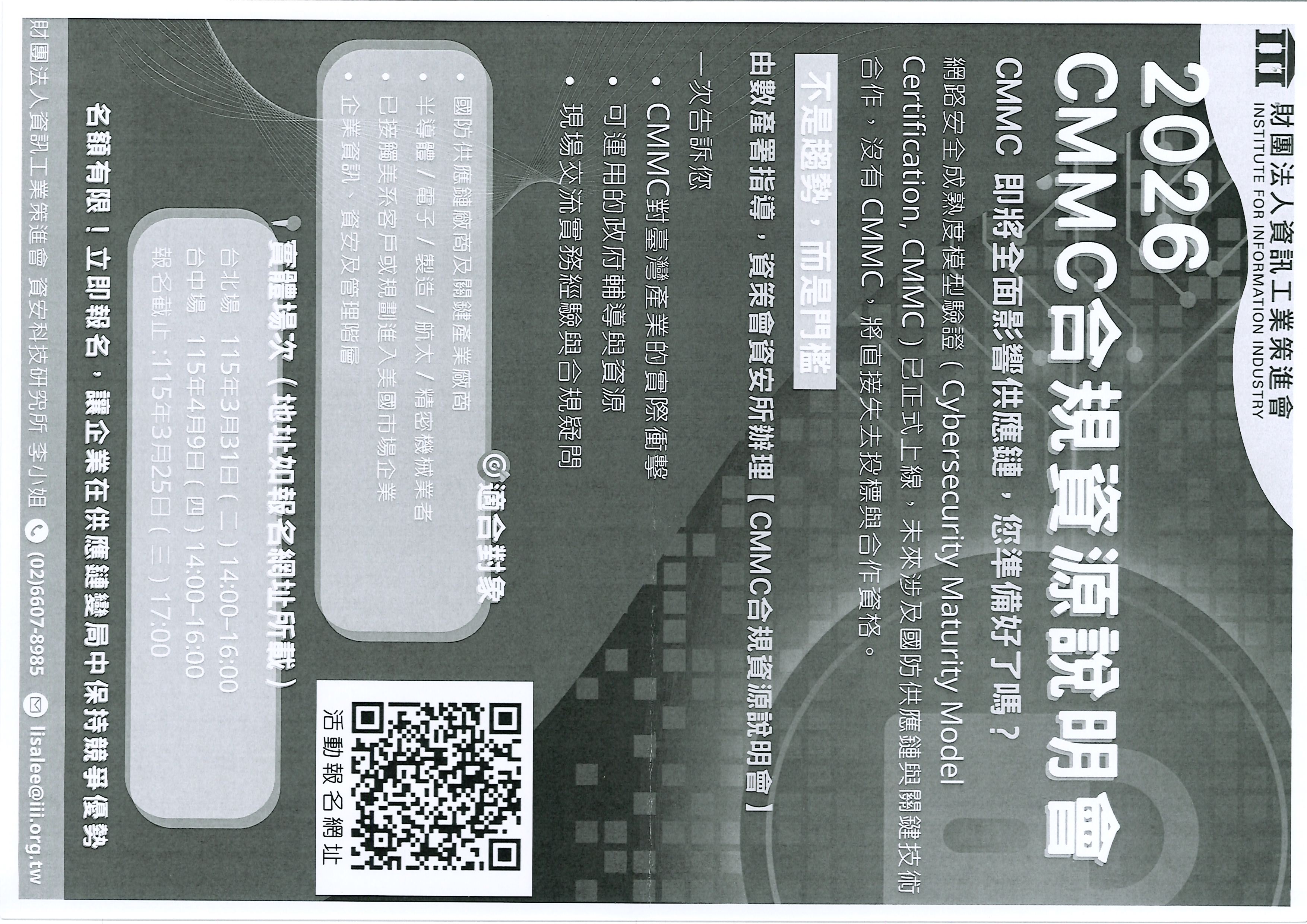 財團法人資訊工業策進會:舉辦「CMMC和規資源」說明會。