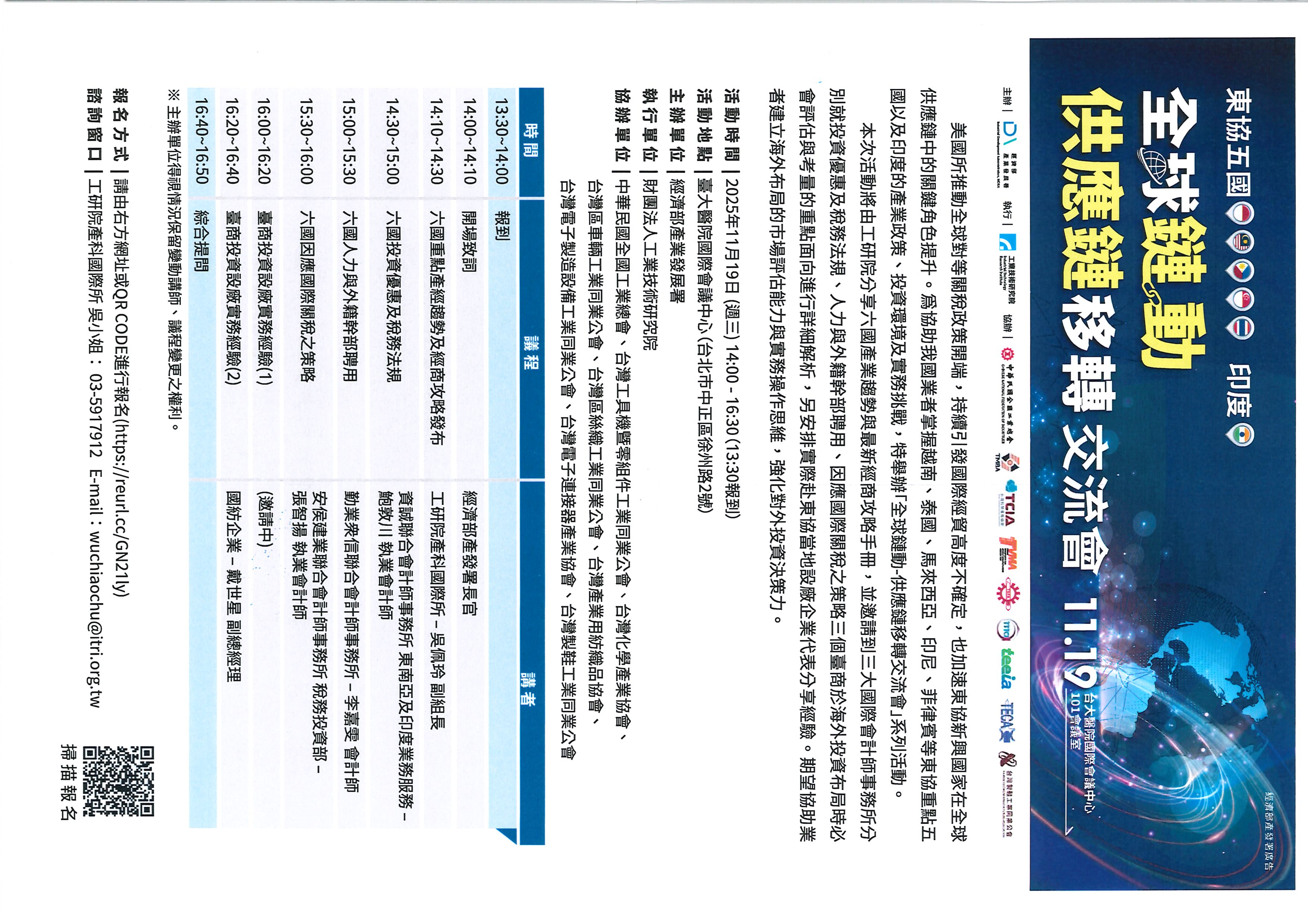 東協五國及印度 全球鏈動 - 供應鏈移轉交流會