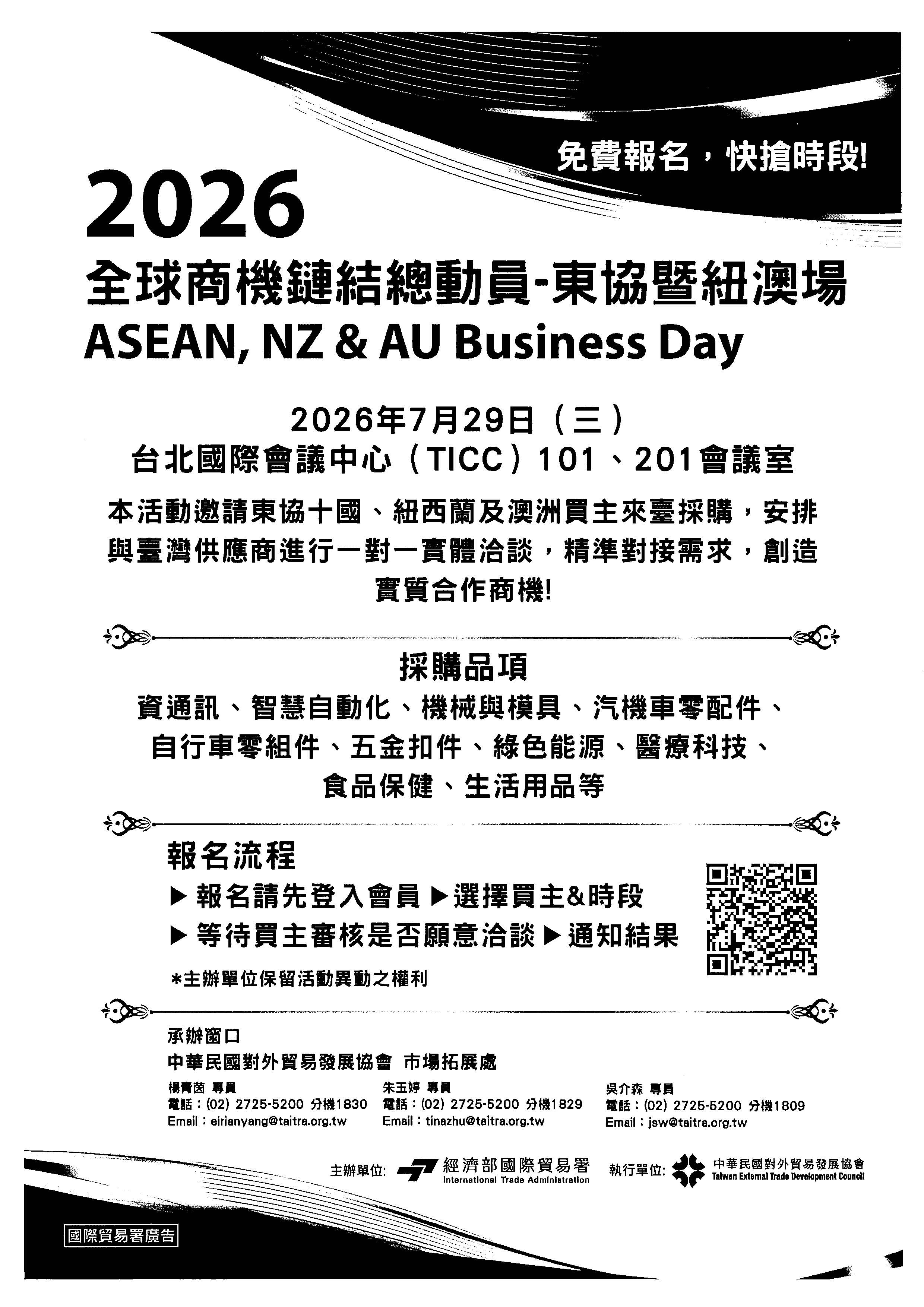 2026年全球商機鏈結總動員-東協暨紐澳場